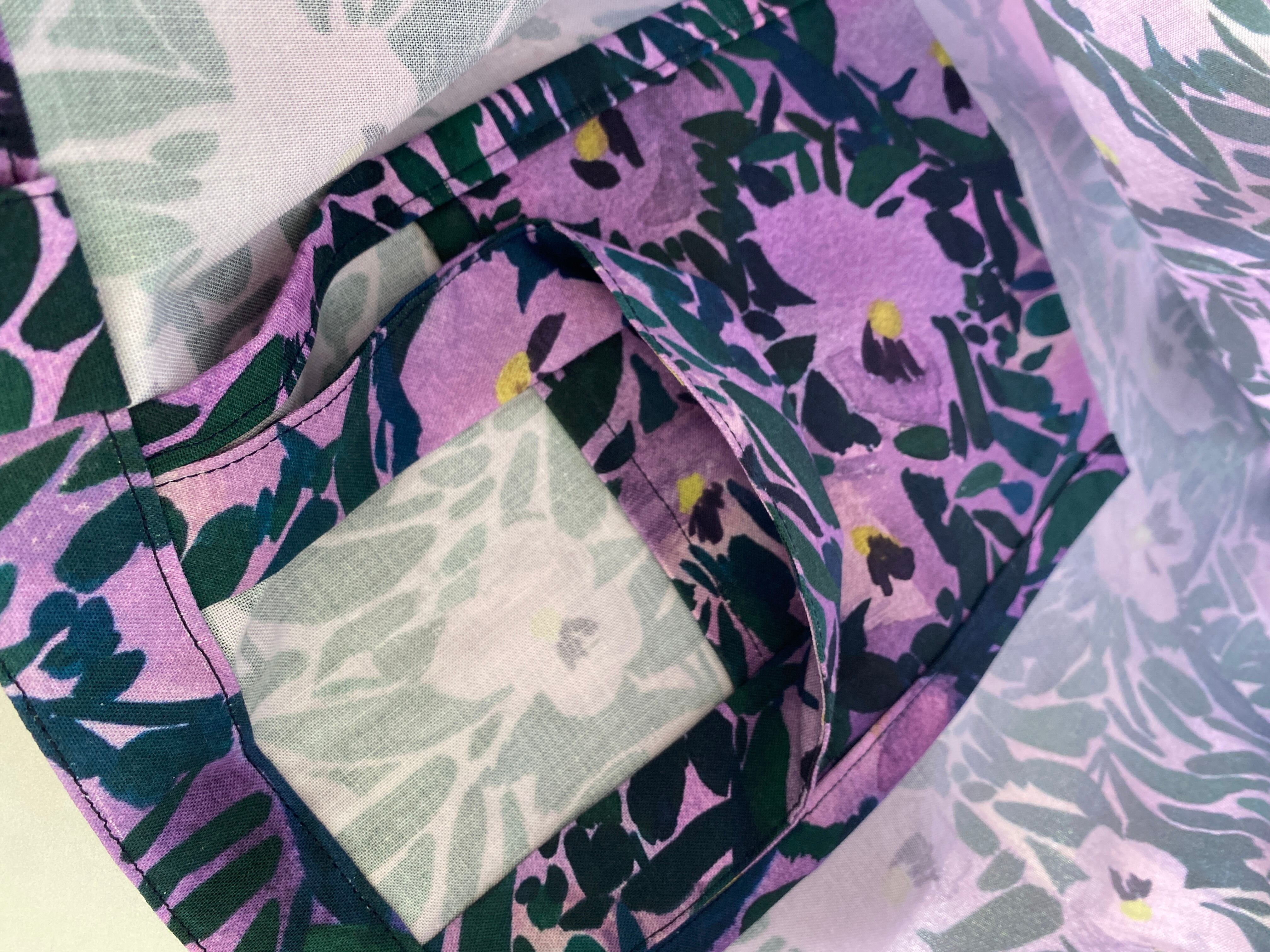 持ち手は肩かけと手持ちの2wayで、用途に応じて使い分けができます。それから中に、スマホなど入れられる内ポケット的なものをつけました。