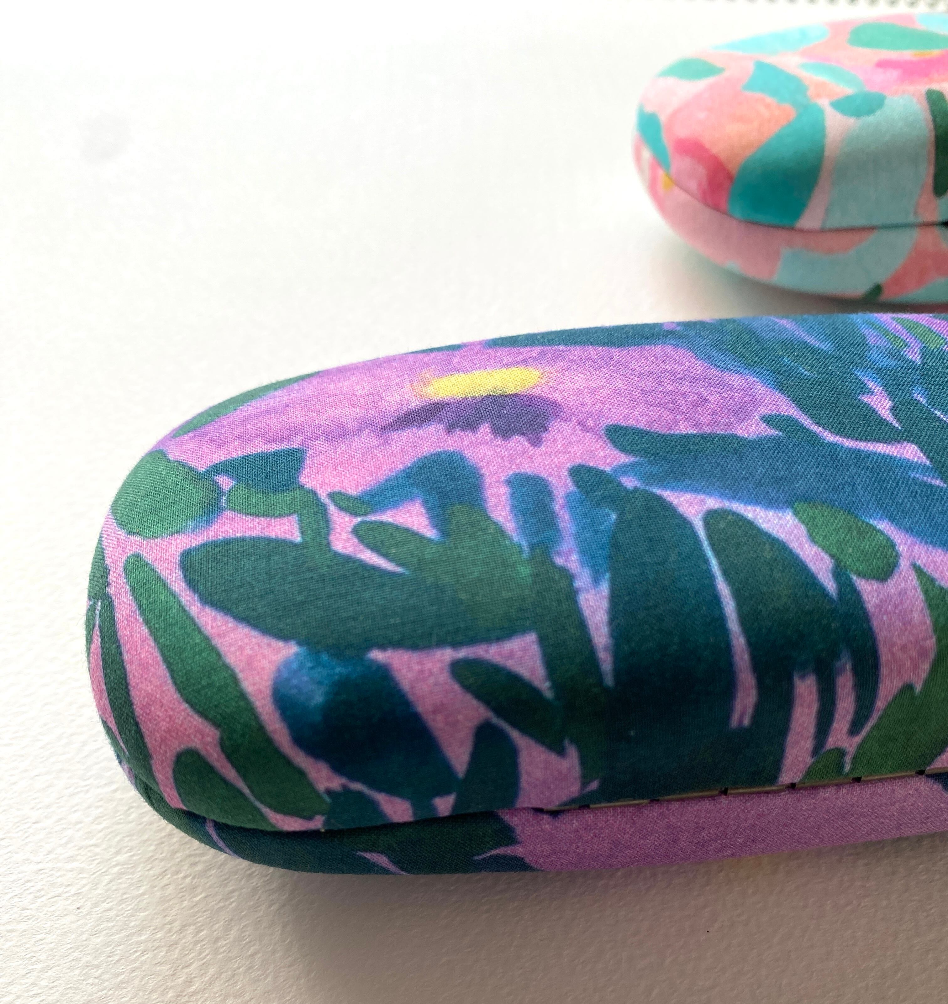 このメガネケースは、オリジナルテキスタイルを用いた華やかなデザインが特徴です。軽量で持ち運びも楽々。普段使いはもちろん、特別な日の贈り物にもピッタリです。あなたの大切なメガネをしっかりと守りつつ、華やかさをプラスしてくれるアイテムです。